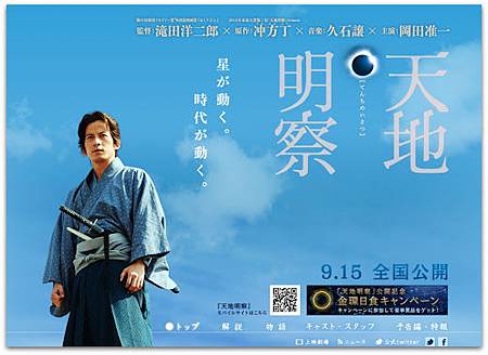 最後來補充介紹一下天地明察電影的訊息,這部電影的男主角是岡田準一,女主角是宮崎葵。電影前兩天已經放上了預告片,搭上久石讓大師的配樂,真是讓人非常期待呢!